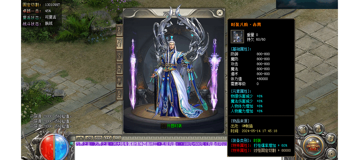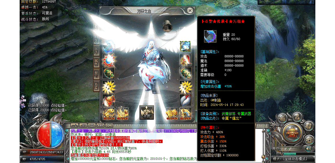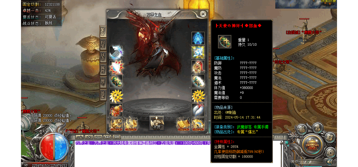 新手上线送刀刀切割秒怪符(真实).所有装备全部BOSS爆出无合成!